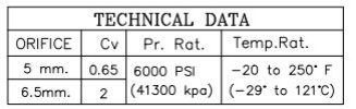 Maximum Working Pressure : 6000 PSI (400 bar) at 200 o C. 10000 PSI (700 bar) at 120 o C.