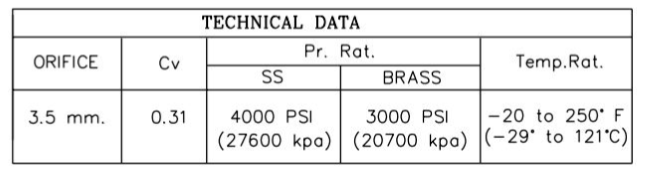 Maximum Working Pressure : 4000 PSI (280 bar) at 200 o C. .