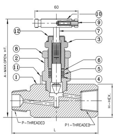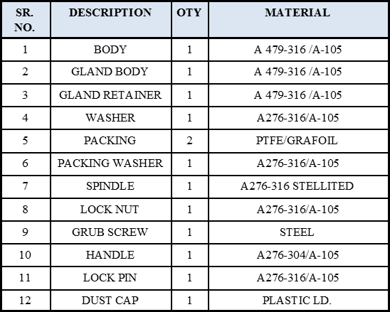 Metal to Metal or Stellited seats. Stem threads Rolled and hard plated and tie stellied (Vee Regulating one piece or nonregulating) or non-rotating ball tip optional.