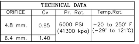 Maximum Working Pressure : 6000 PSI (400 bar) at 200 o C. 10000 PSI (700 bar) at 120 o C.