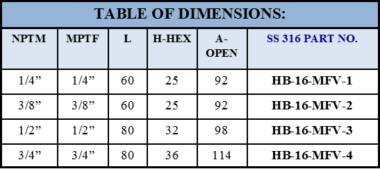 Variety of End connections include "FTS” single or twin ferrule tube fittings, Male or Female N. P. T. and I. S. O., DIN and JIS tapered pipe ends.