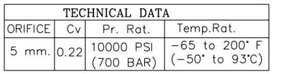 Maximum Working Pressure : 6000 PSI (400 bar) at 200 o C. 10000 PSI (700 bar) at 120 o C.
