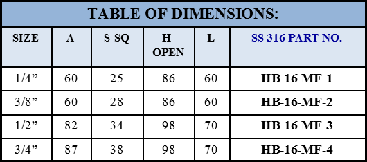 Variety of End connections include "FTS” single or twin ferrule tube fittings, Male or Female N. P. T. and I. S. O., DIN and JIS tapered pipe ends.