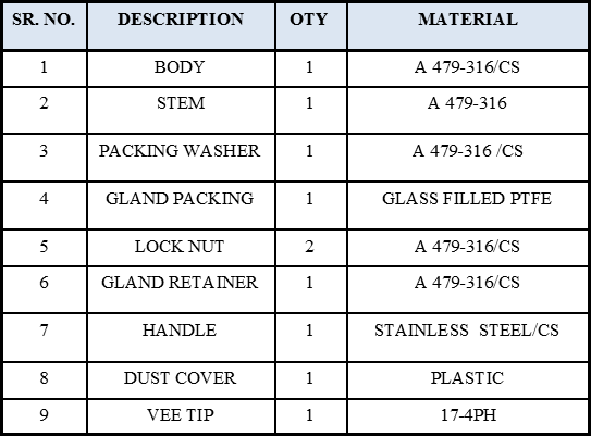 Metal to Metal or Stellited seats. Stem threads Rolled and hard plated and tie stellied (Vee Regulating one piece or nonregulating) or non-rotating ball tip optional.