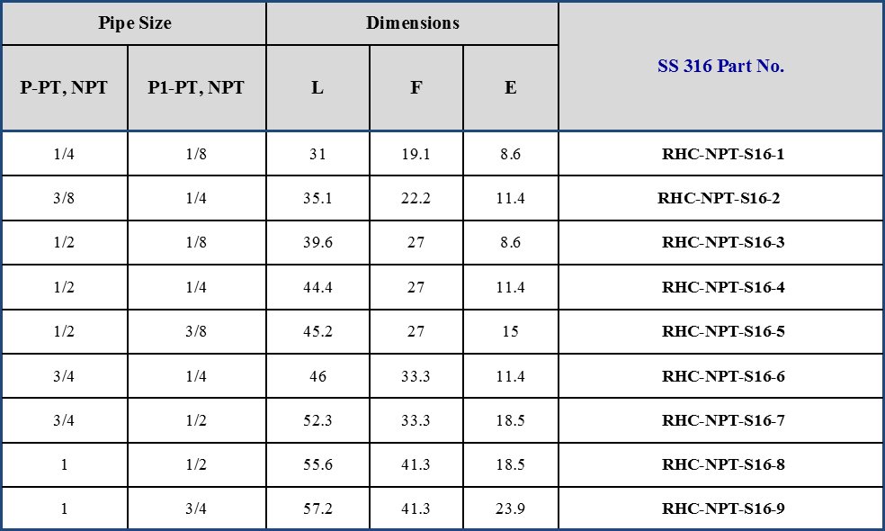 REDUCING HEX COUPLINGS