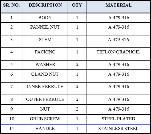 Variety of End connections include "FTS” single or twin ferrule tube fittings, Male or Female N. P. T. and I. S. O., DIN and JIS tapered pipe ends.
