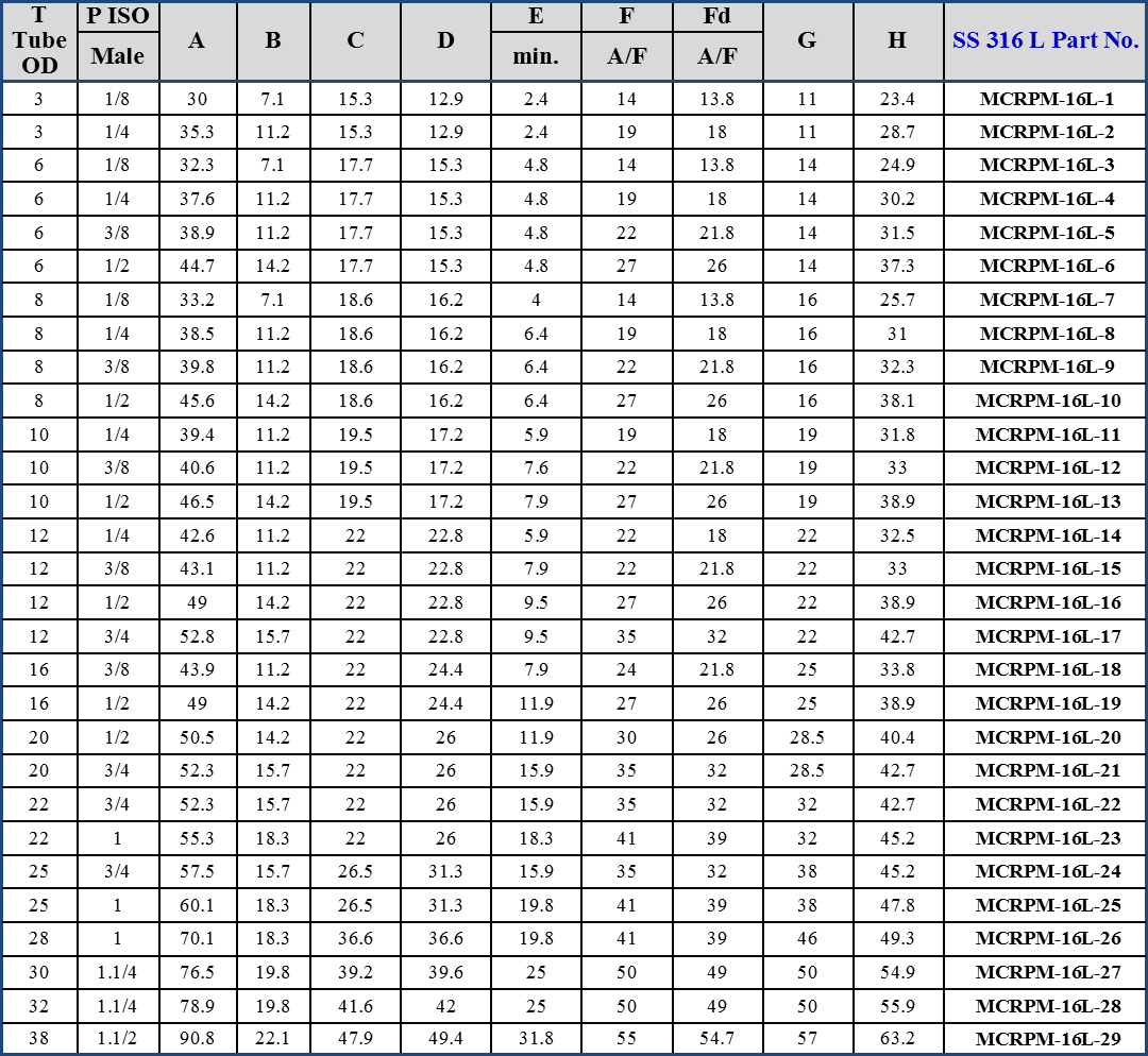 METRIC OD TUBE x Male ISO* Parallel Thread - RP