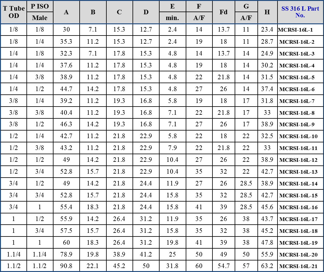INCH OD TUBE x Male ISO* Parallel Thread - RS