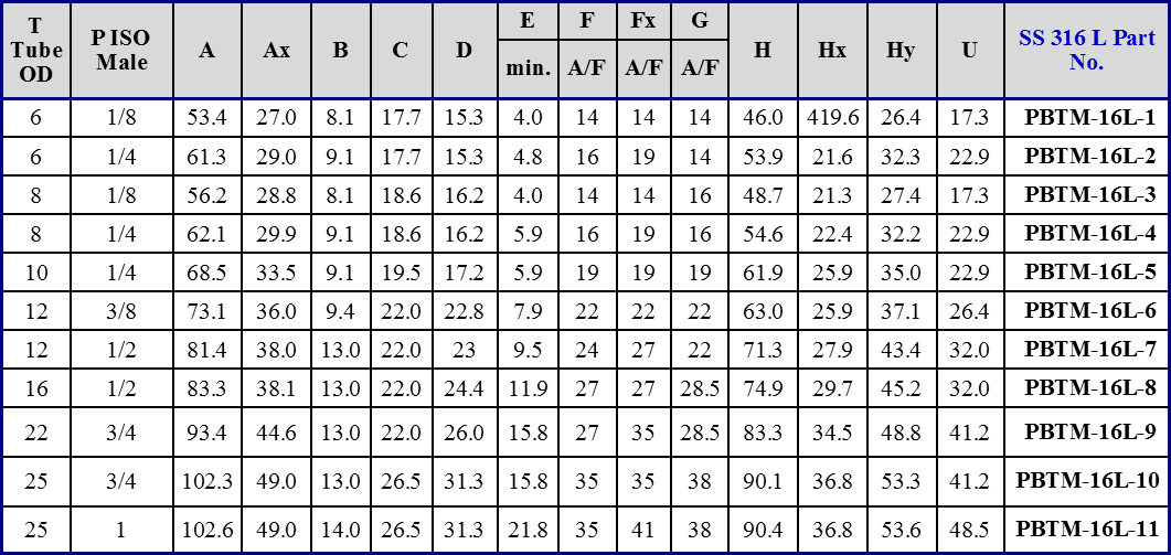 METRIC OD TUBE x Male ISO* Parallel Threads