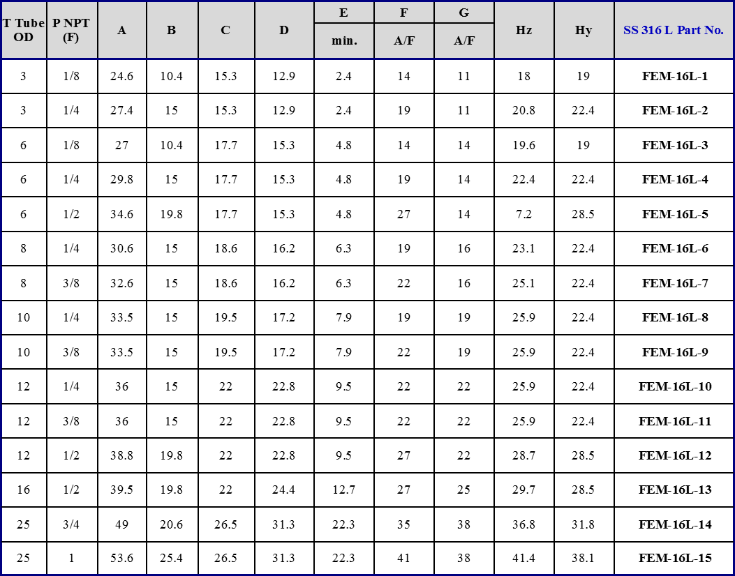 METRIC OD TUBE x FEMALE NPT THREAD
