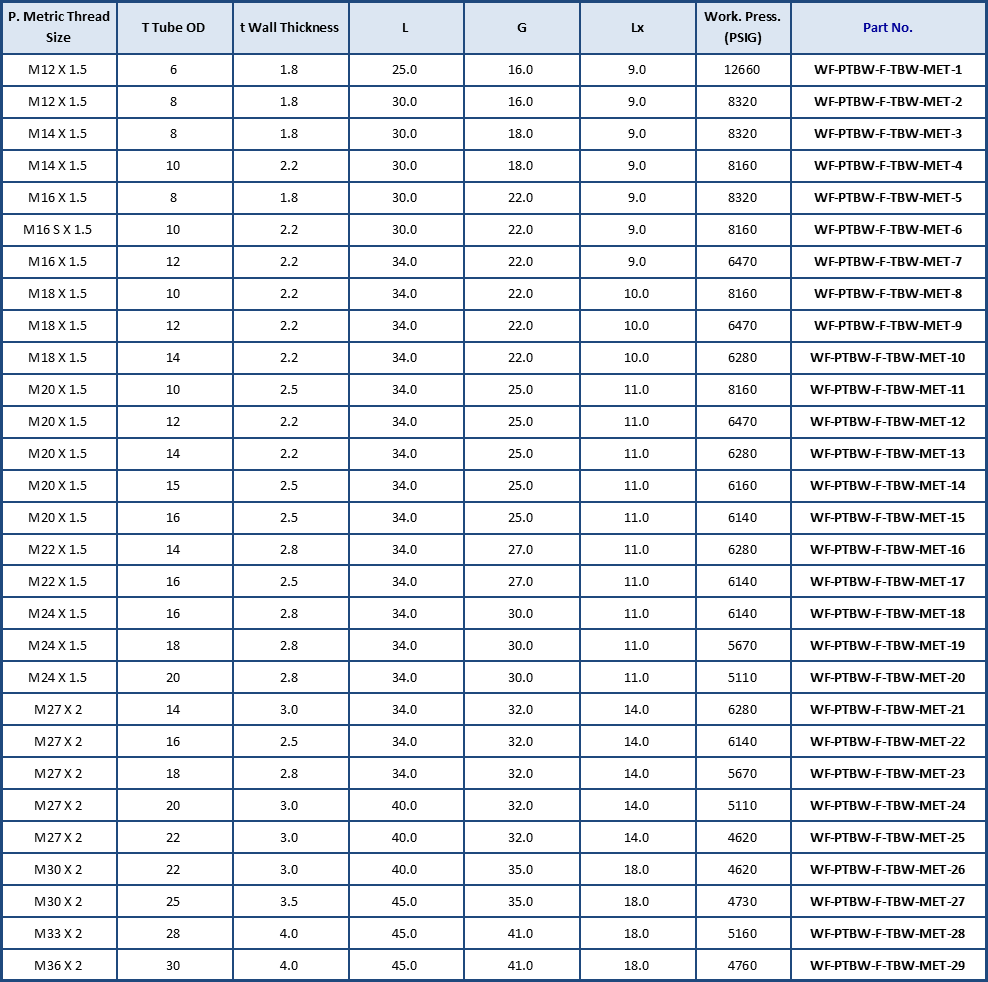 FEMALE METRIC PIPE THREAD X TUBE BUTT WELD (METRIC)